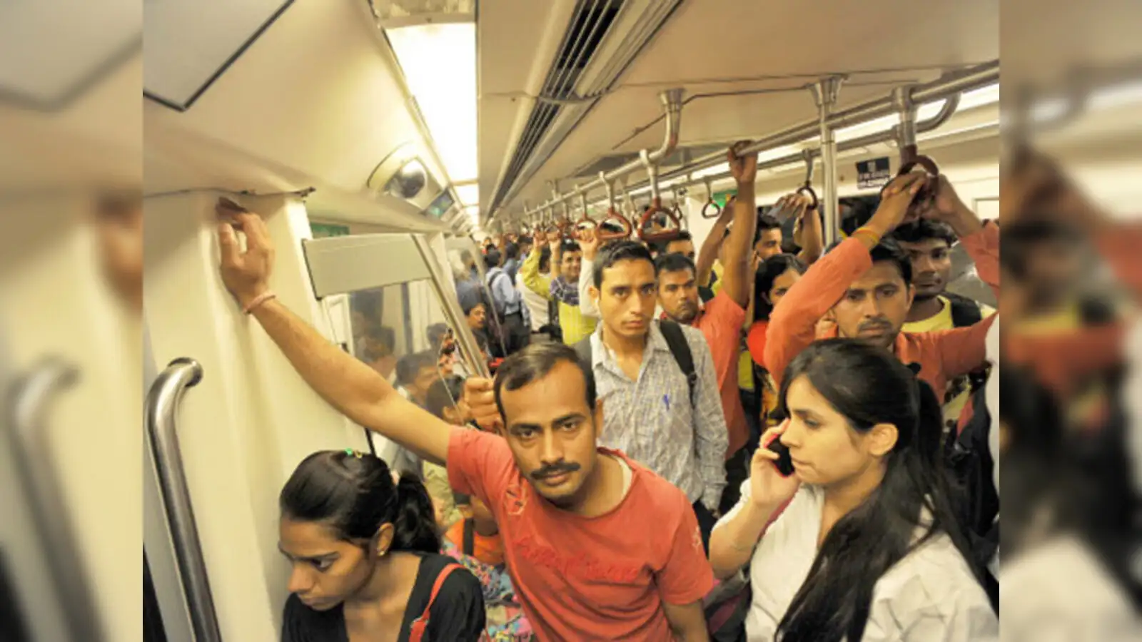 Vagon metroa je pun. Čovek kaže ženi koja stoji pored njega: